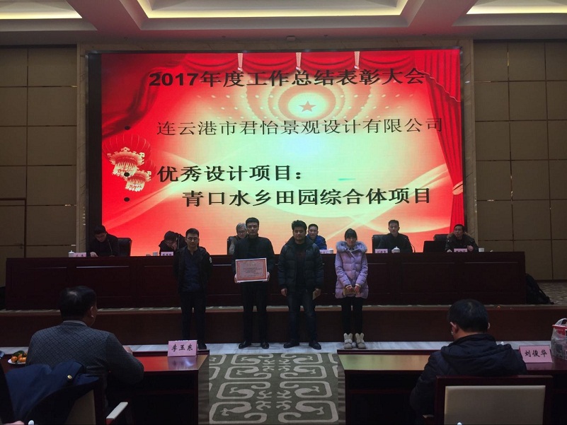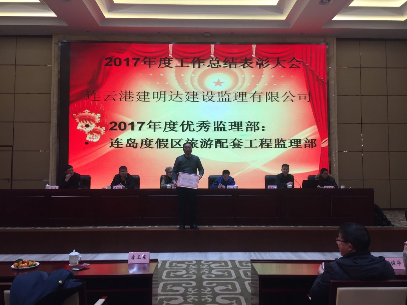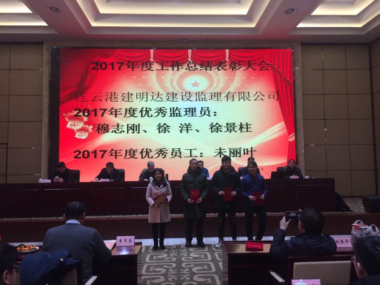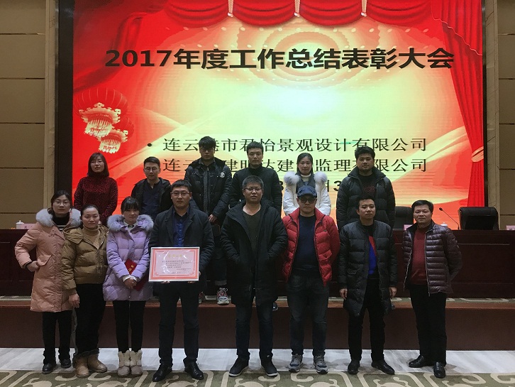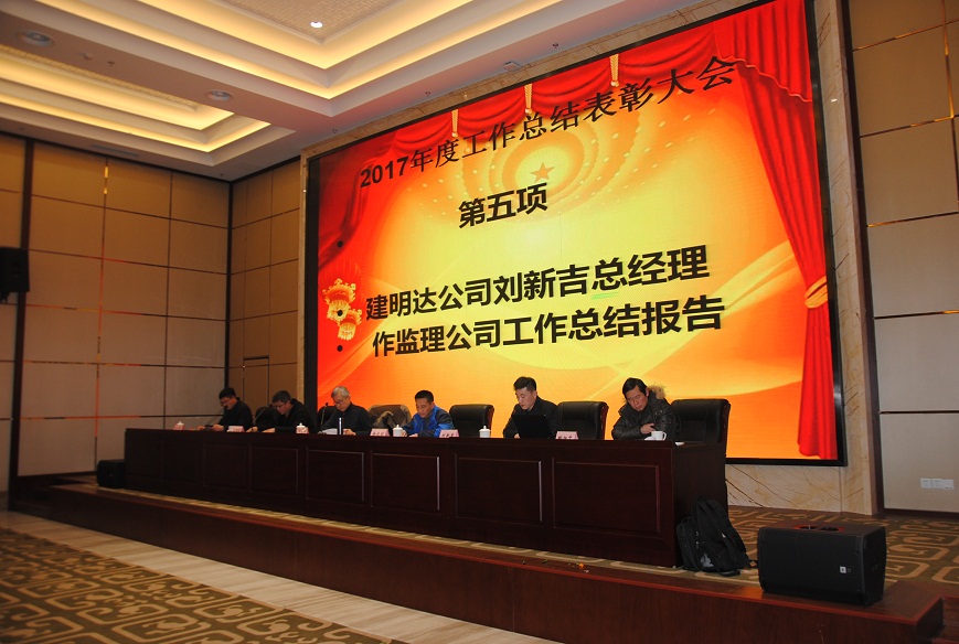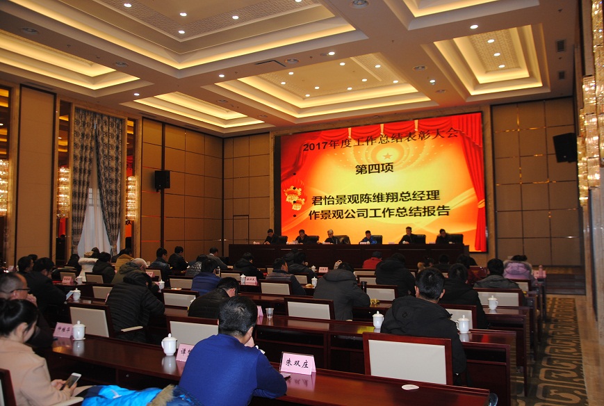 下午五點,2017年工作總結表彰大會在溫泉大酒店會議中心準時召開??偣径聲I導李清洋、王家松、徐遠航,君怡景觀公司總經(jīng)理,建明達監(jiān)理公司總經(jīng)理劉新吉,建明達監(jiān)理公司總工姚加千,各職能部門經(jīng)理、各項目總監(jiān)及全體員工參加了大會。