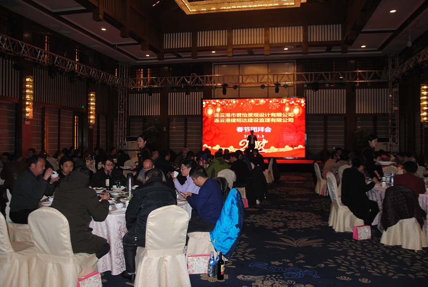 晚七時新春團拜晚宴準時在宴會大廳開始,公司領導與全體員工一同參加了晚宴。員工還自發(fā)排練了一臺春節(jié)聯(lián)歡晚會,有歌曲、有舞蹈、有朗誦,節(jié)目異彩紛呈,為晚宴增加了歡樂的氣氛。