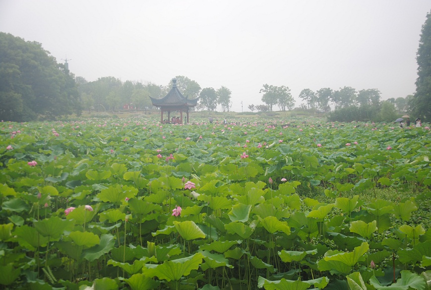 第一站——全國(guó)最大的城中湖武漢東湖磨山風(fēng)景區(qū),素有“十里長(zhǎng)湖,八里磨山”之稱(chēng)。六月的武漢,正是荷花盛開(kāi)的季節(jié)。而東湖的荷花此時(shí)正是一道亮麗的風(fēng)景線。一場(chǎng)雨后,點(diǎn)點(diǎn)露珠凝結(jié)在花上,空氣中飄散著少許水霧,走入其中,仿佛漫步仙境。