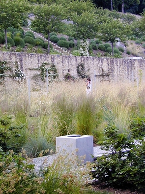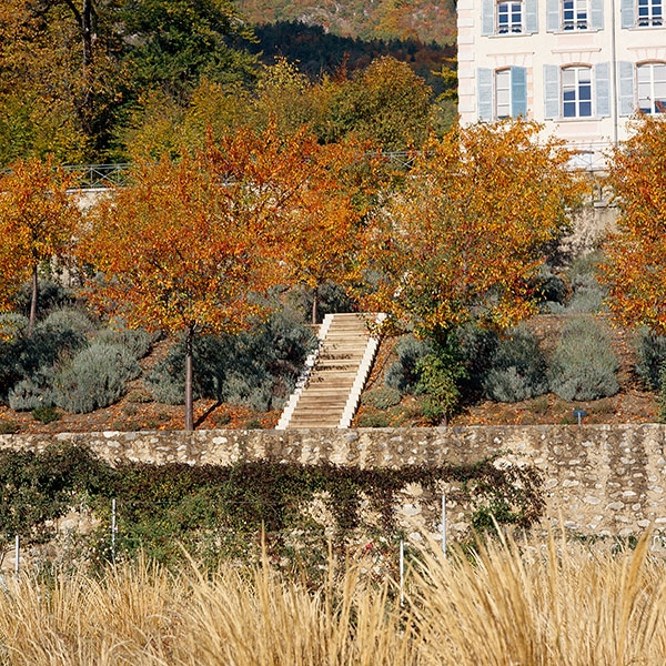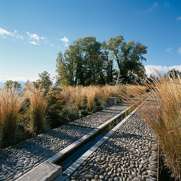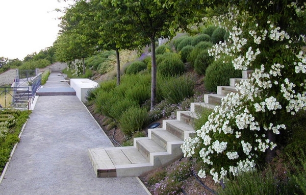 Charance花園位于法國(guó)Gap鎮(zhèn)的一塊梯田上面,邊坡上設(shè)有擋土墻,水元素貫穿整個(gè)設(shè)計(jì)。Gap鎮(zhèn)想要在這塊土地上恢復(fù)一個(gè)梯田狀的花園;部分區(qū)域設(shè)置成高山植物溫室,里面種上玫瑰。植被由種植的梯田和玫瑰組成。此花園在土地重建方面提供一個(gè)“contemporary reading”的概念。