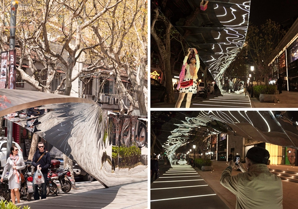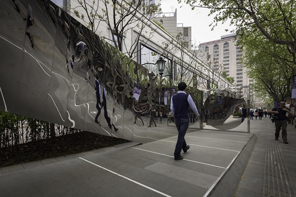 上海新天地的一個街頭公共藝術(shù)設(shè)施。該公共裝置位于馬路和步行廣場之間,與城市以及其中來往的人群發(fā)生著關(guān)聯(lián)。UNStudio的Ben van Berkel提到消費文化不僅僅是購物那么簡單,而是和整個生活圖景有關(guān),我們消費我們的城市,我們周圍的建筑,我們周圍的人群,甚至包括我們自己。
