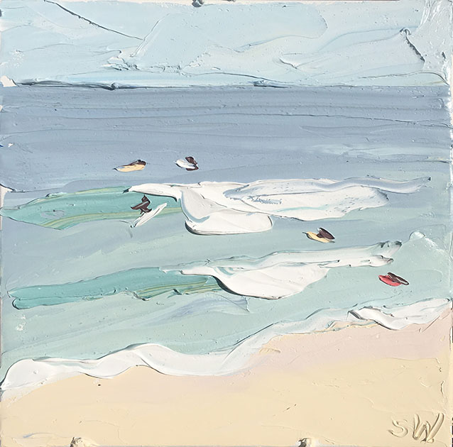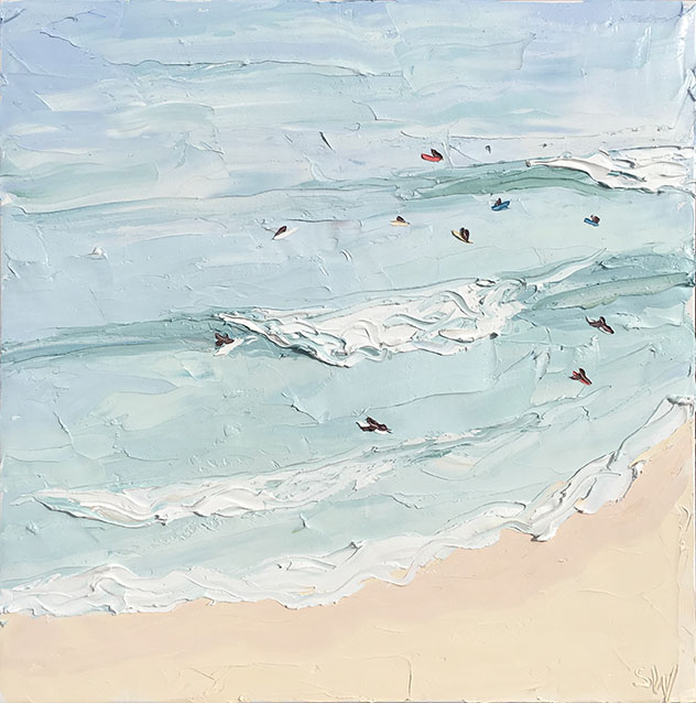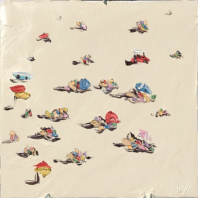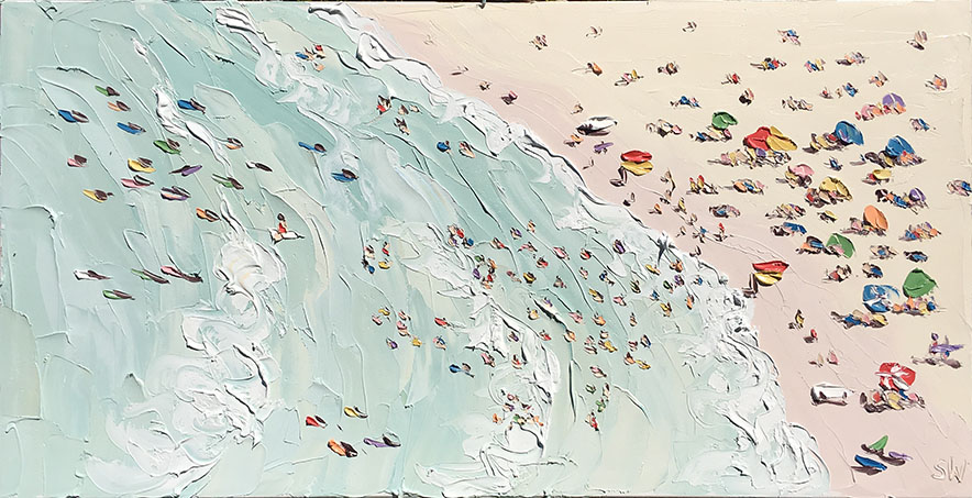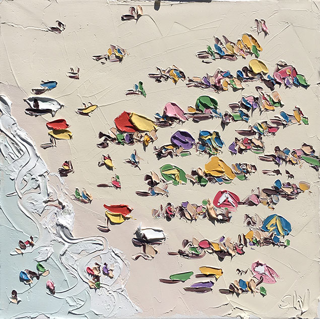 Sally West是澳大利亞最知名的藝術(shù)家之一,她的作品頗受?chē)?guó)際藏家的青睞。這里為大家展示她的最新創(chuàng)作海灘系列。自由奔放的涂抹盡顯夏日海灘休閑風(fēng)情。精準(zhǔn)嫻熟的色彩與恣意的觸痕,讓雖是色塊的展現(xiàn)的畫(huà)面如此鮮活生動(dòng),仿佛可以聽(tīng)見(jiàn)海浪聲聲與人聲鼎沸。