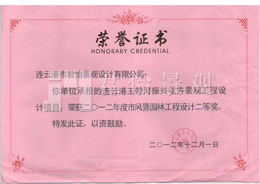2012年獲獎(jiǎng)證書