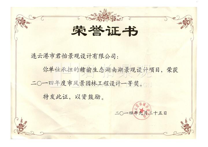 2014年獲獎證書