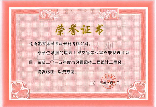 2015年獲獎證書