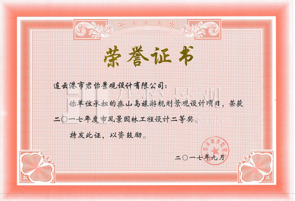 2017年獲獎證書
