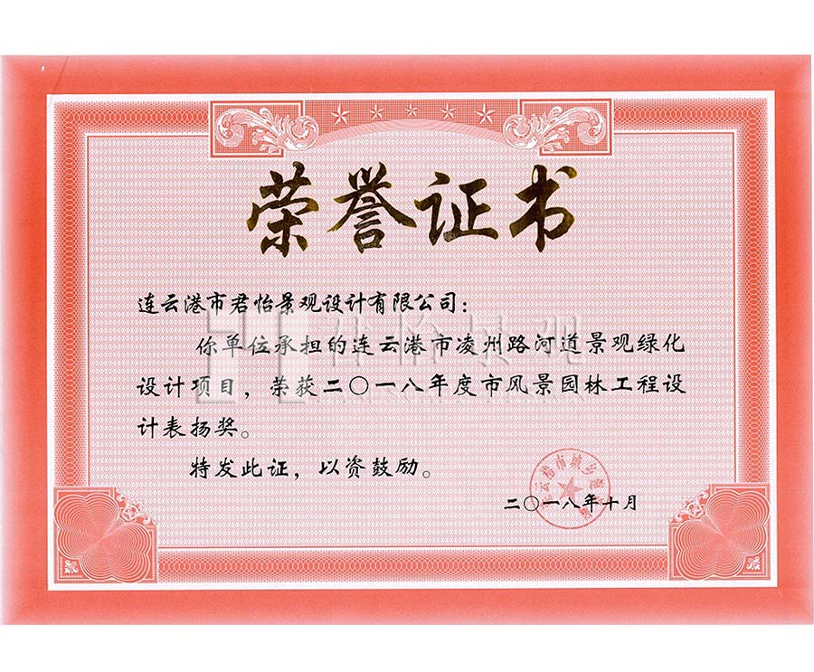 市風(fēng)景園林工程設(shè)計(jì)表?yè)P(yáng)獎(jiǎng)